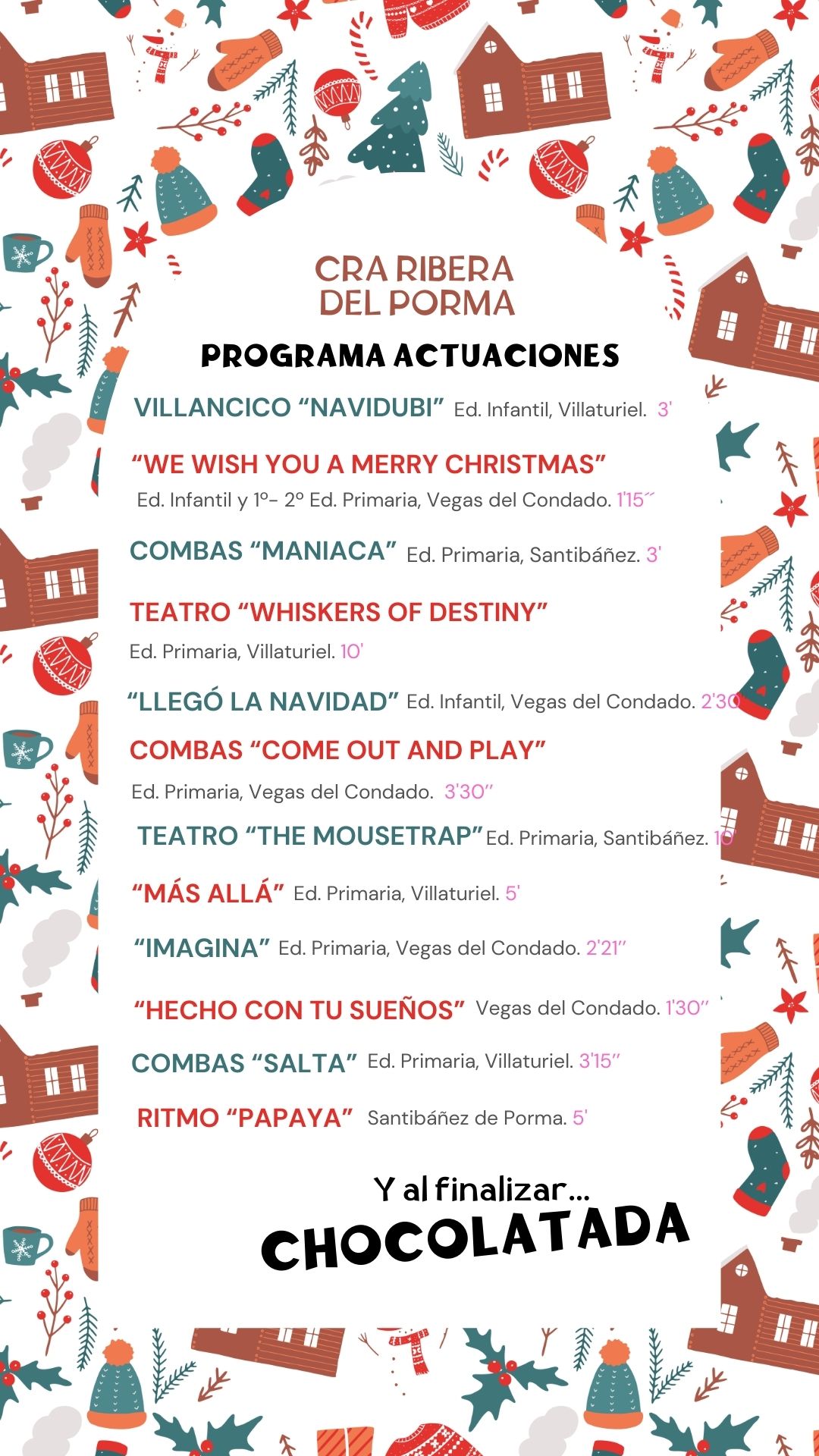 A la drececha aparece la duración aproximada de cada actuación para